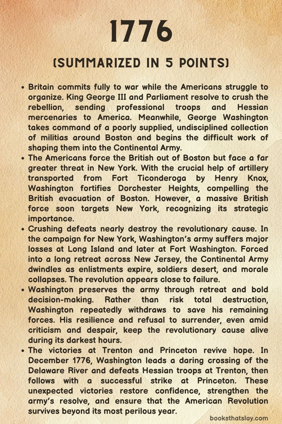 Washington emerges as a leader shaped by adversity, learning from defeat and relying on audacity when caution would mean ruin. The struggles of 1776 establish the foundation for the eventual success of the American Revolution.