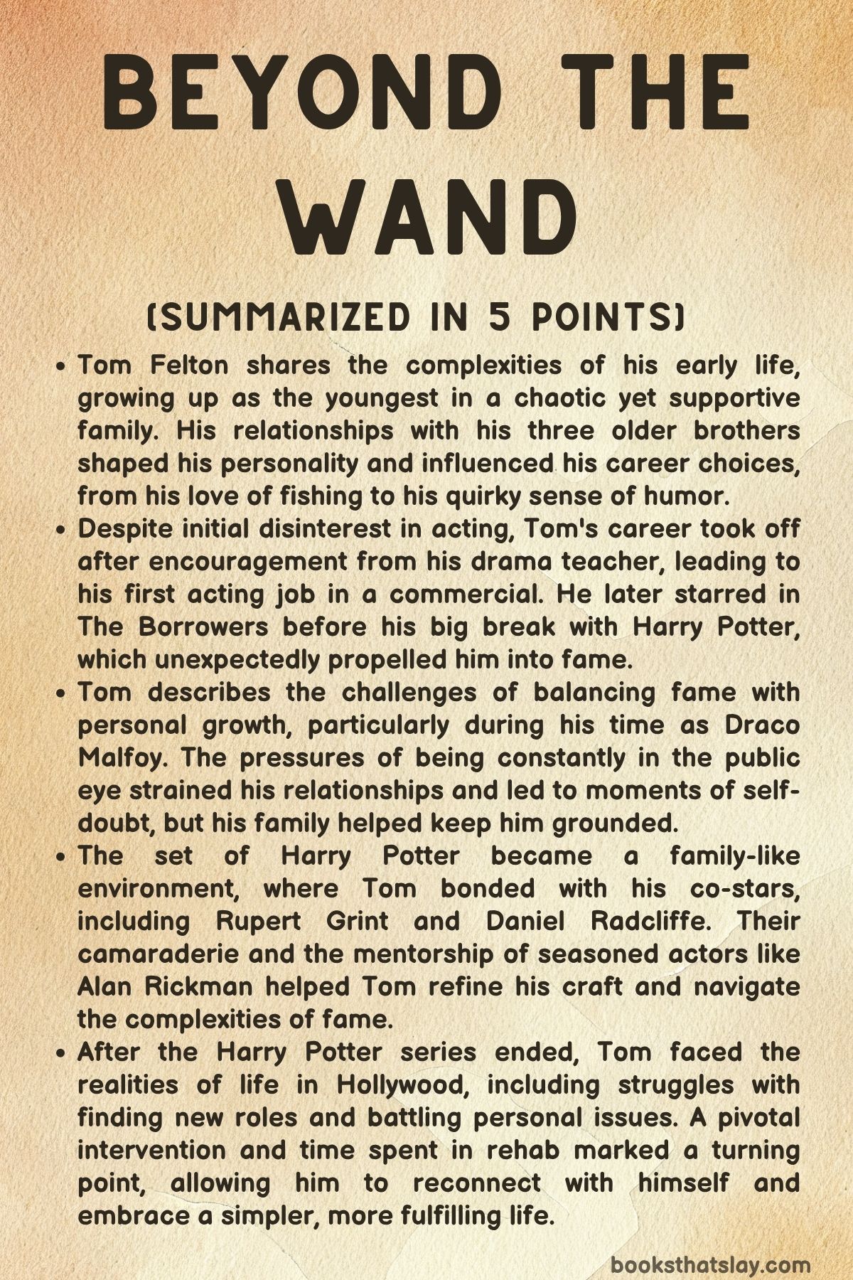 Tom Felton’s reflections on his childhood and the way it shaped his adulthood are central to understanding his journey. The book highlights the profound influence his early experiences had on his character and his approach to both life and work.