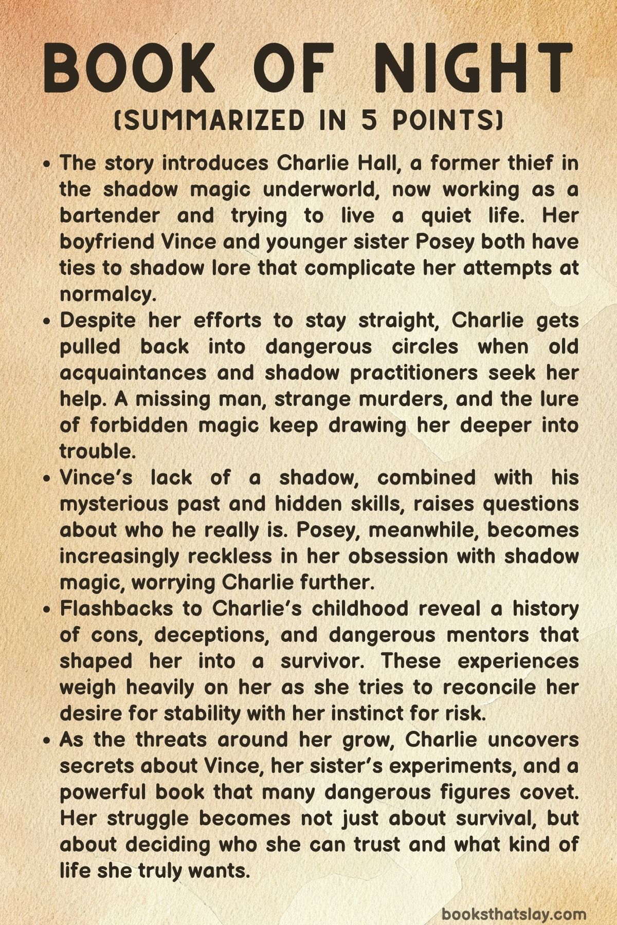 Book of Night by Holly Black is a contemporary dark fantasy that blends crime, magic, and personal struggle. Set in a world where shadows can be manipulated and weaponized, the novel follows Charlie Hall, a former thief trying to escape her dangerous past.