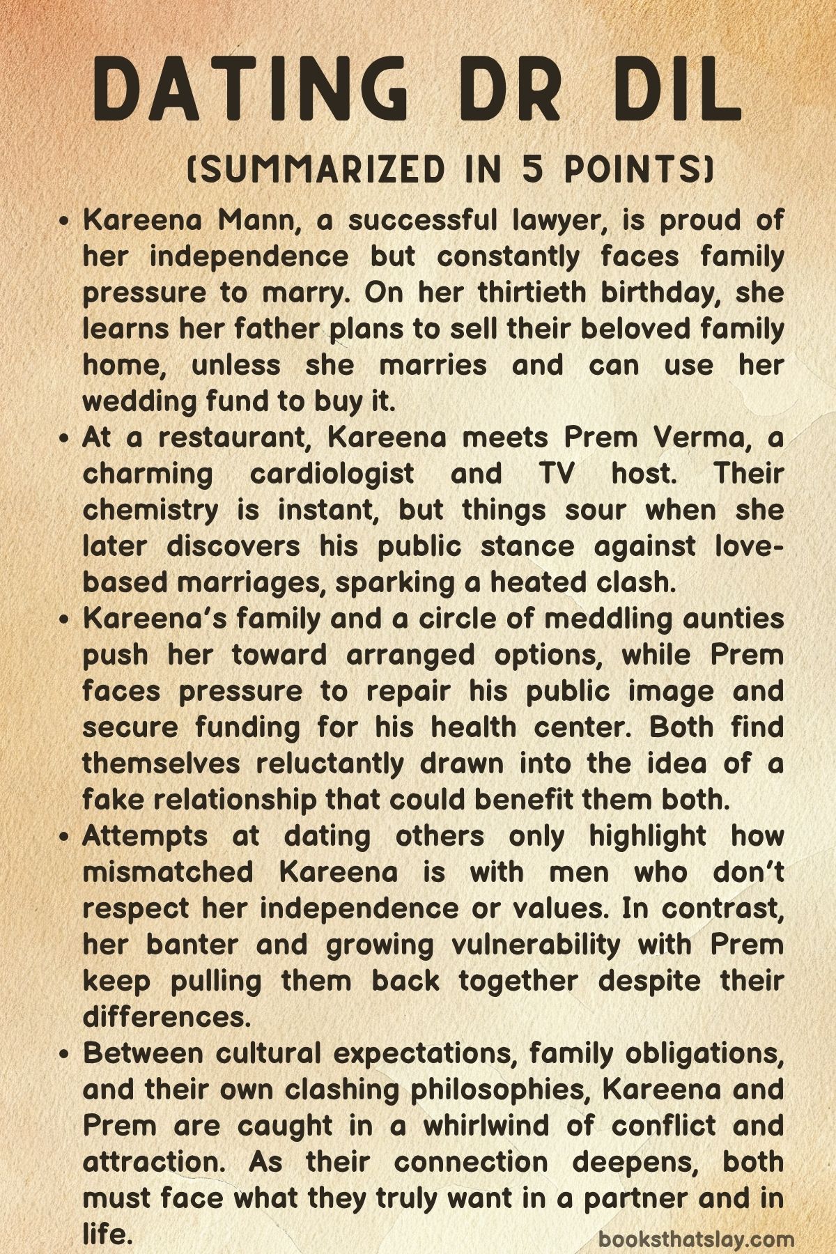 Dating Dr. Dil by Nisha Sharma is a lively contemporary romance that brings together humor, culture, and the clash between love and practicality. At its heart, the story follows Kareena Mann, a successful but single lawyer, and Dr. Prem Verma, a cardiologist and local TV personality who dismisses love as a dangerous distraction.