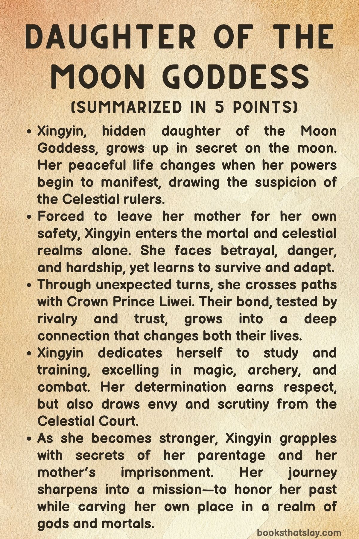 Struggling in a realm that despises her family, she carves her path through determination, skill, and courage. As she rises from servant to warrior, she forges friendships, faces betrayal, and grapples with love and loyalty while keeping her true identity a secret. Ultimately, Xingyin’s journey becomes one of self-discovery, sacrifice, and hope for her mother’s freedom.