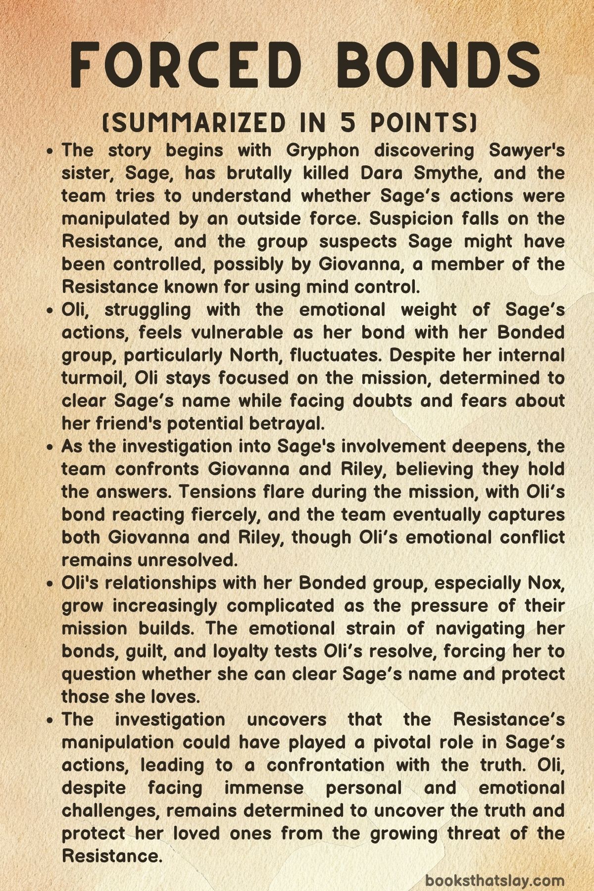Forced Bonds picks up immediately after the shocking events at the end of the previous installment. The story opens with Gryphon discovering security footage in the Sanctuary showing Sage Benson—Oli’s best friend and Sawyer’s sister—brutally murdering Dara Smythe, a trusted Shield.