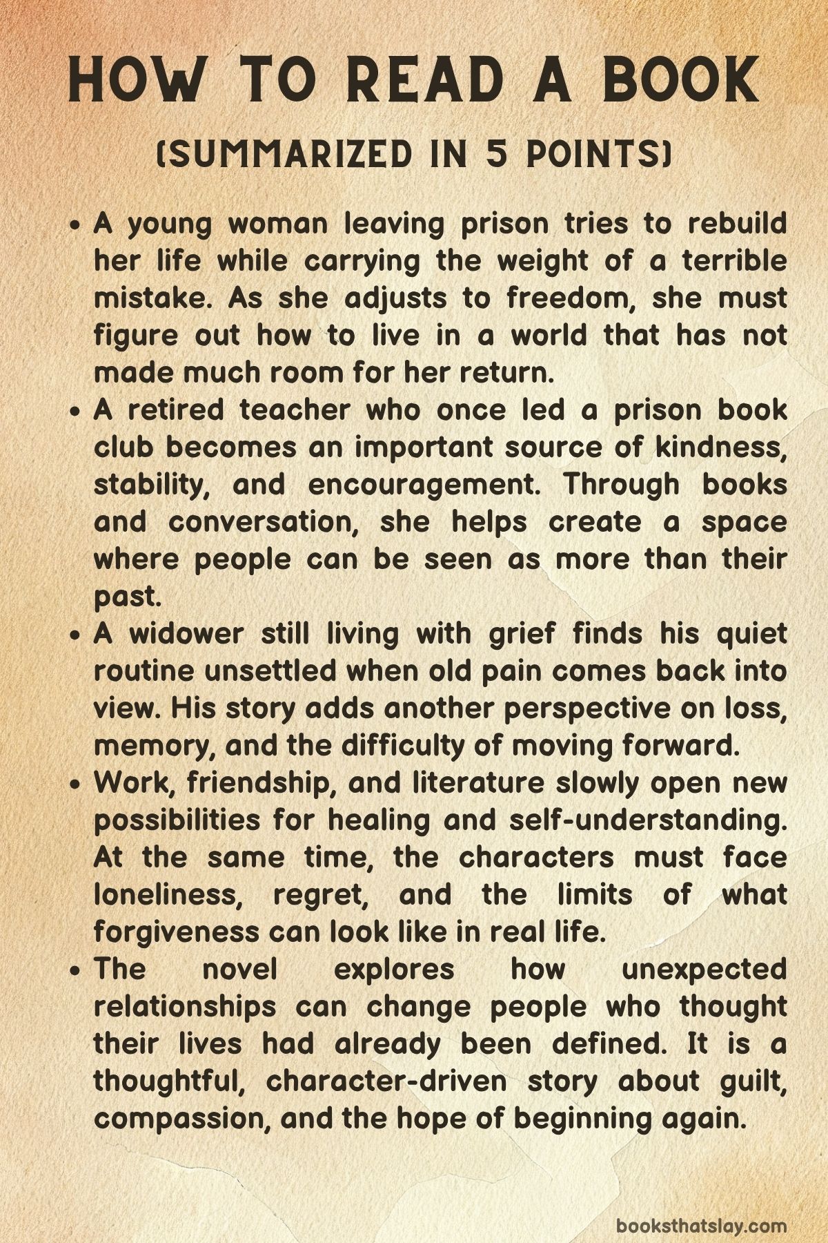The novel is thoughtful, humane, and deeply interested in what reading can do for people who feel cut off from the world. It asks whether a person can survive shame, accept forgiveness, and still build a meaningful life.