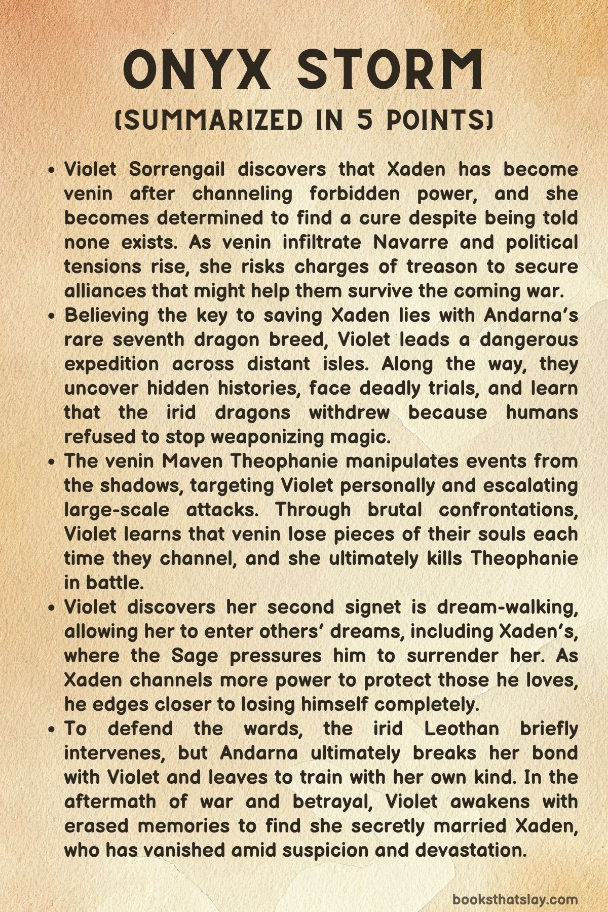 Onyx Storm Summary, Characters and Themes