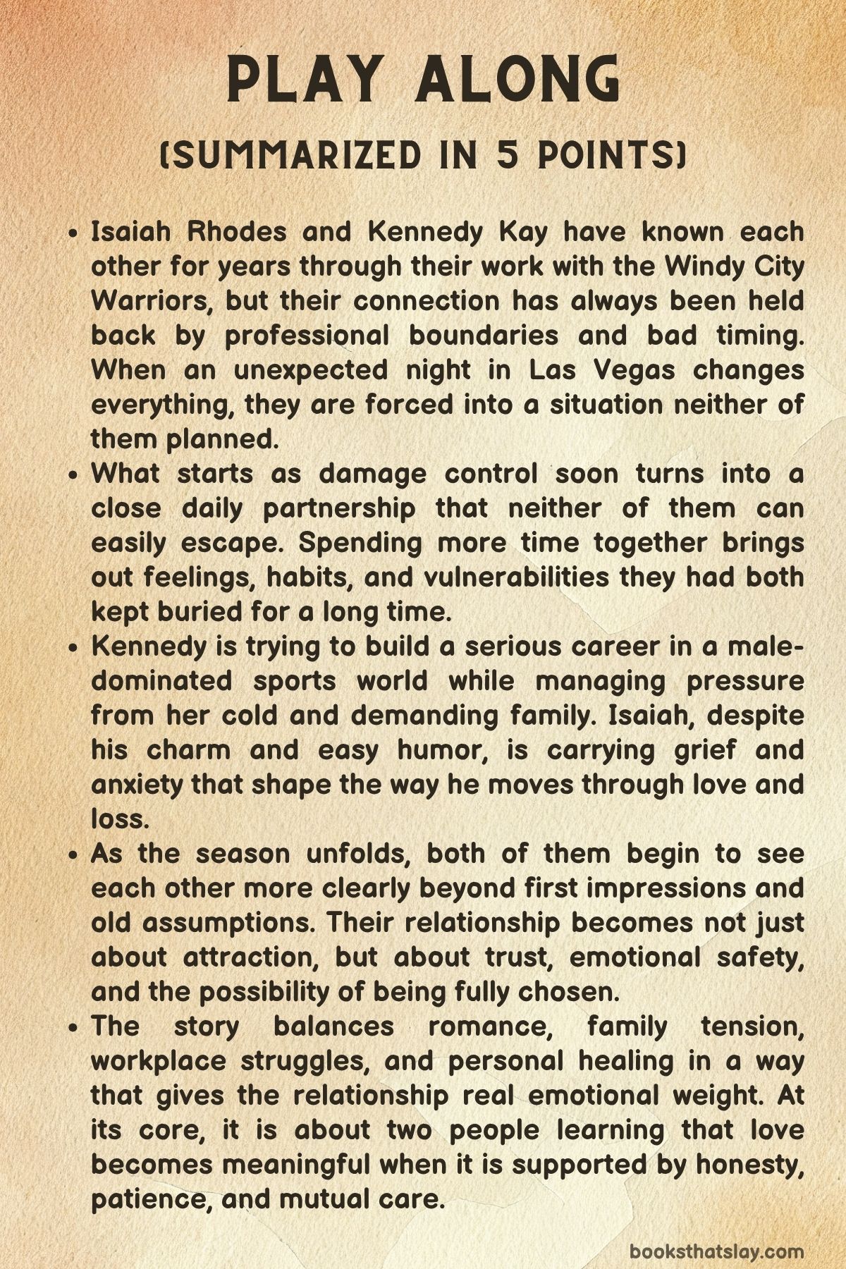 The story begins with an impulsive drunken marriage in Las Vegas, but it is really about trust, healing, and the slow work of choosing love when old pain makes that choice difficult. With humor, chemistry, and strong emotional stakes, Play Along follows two people who begin with a fake arrangement and end up building something real.