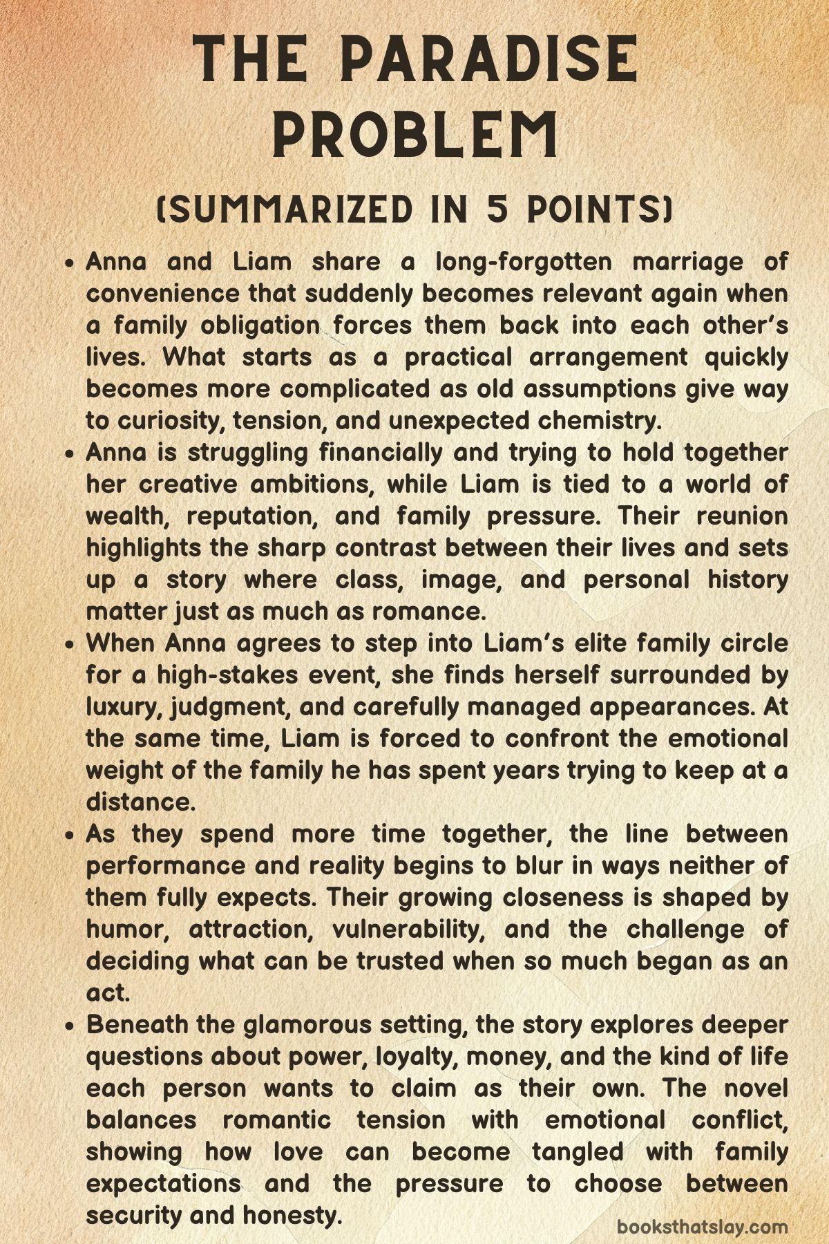 The Paradise Problem by Christina Lauren is a contemporary romance built on a fake marriage that turns unexpectedly real. At first, Anna and Liam seem like complete opposites: she is struggling to stay afloat, while he comes from staggering wealth and a family empire built on control, image, and power.