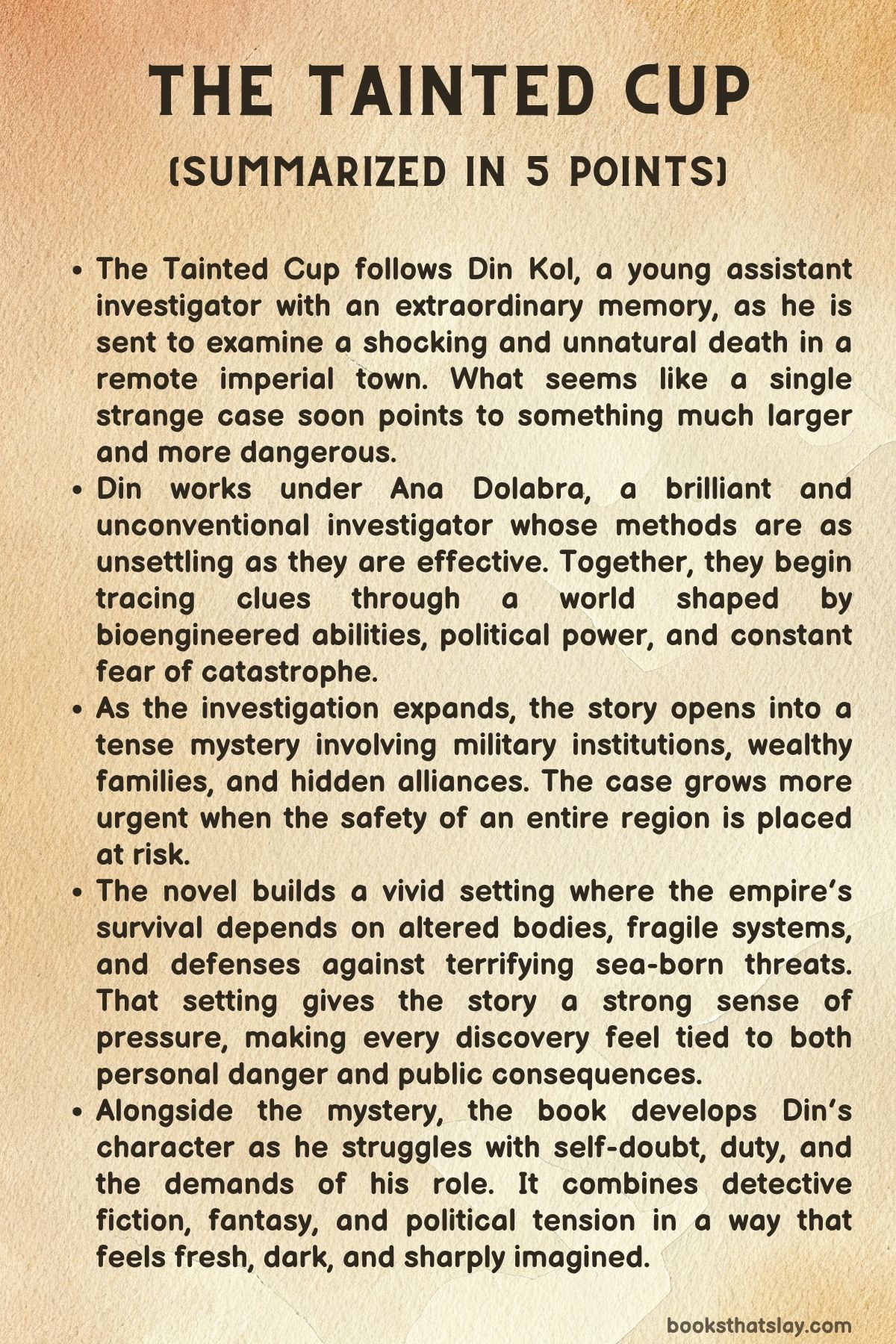 The Tainted Cup Summary, Characters and Themes